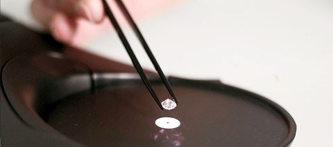 Jeder Stein, der eine weitere Untersuchung erfordert, wird an einen Physiker übergeben, der die Lichtabsorption des Diamanten mit einer Spektroskopie untersucht, um die Echtheit des Diamanten mit 100%iger Sicherheit festzustellen.