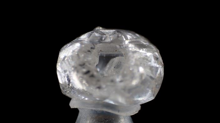 Initial conclusions suggest the cavity was formed due to preferential etching of an intermediate layer of poor-quality fibrous diamond. The original ‘core’ would have consisted of good-quality diamond growth. However, a subsequent layer of growth was likely poor and fibrous, followed by a further ‘outer coating’ of gem-quality crystal. At some point between its formation and travel to the surface of the Earth, the poor-quality layer etched away. Only the better quality material ‘survived’ this process – the outer diamond and the core – which, in this case, led to a diamond that can freely move around within an inner space.